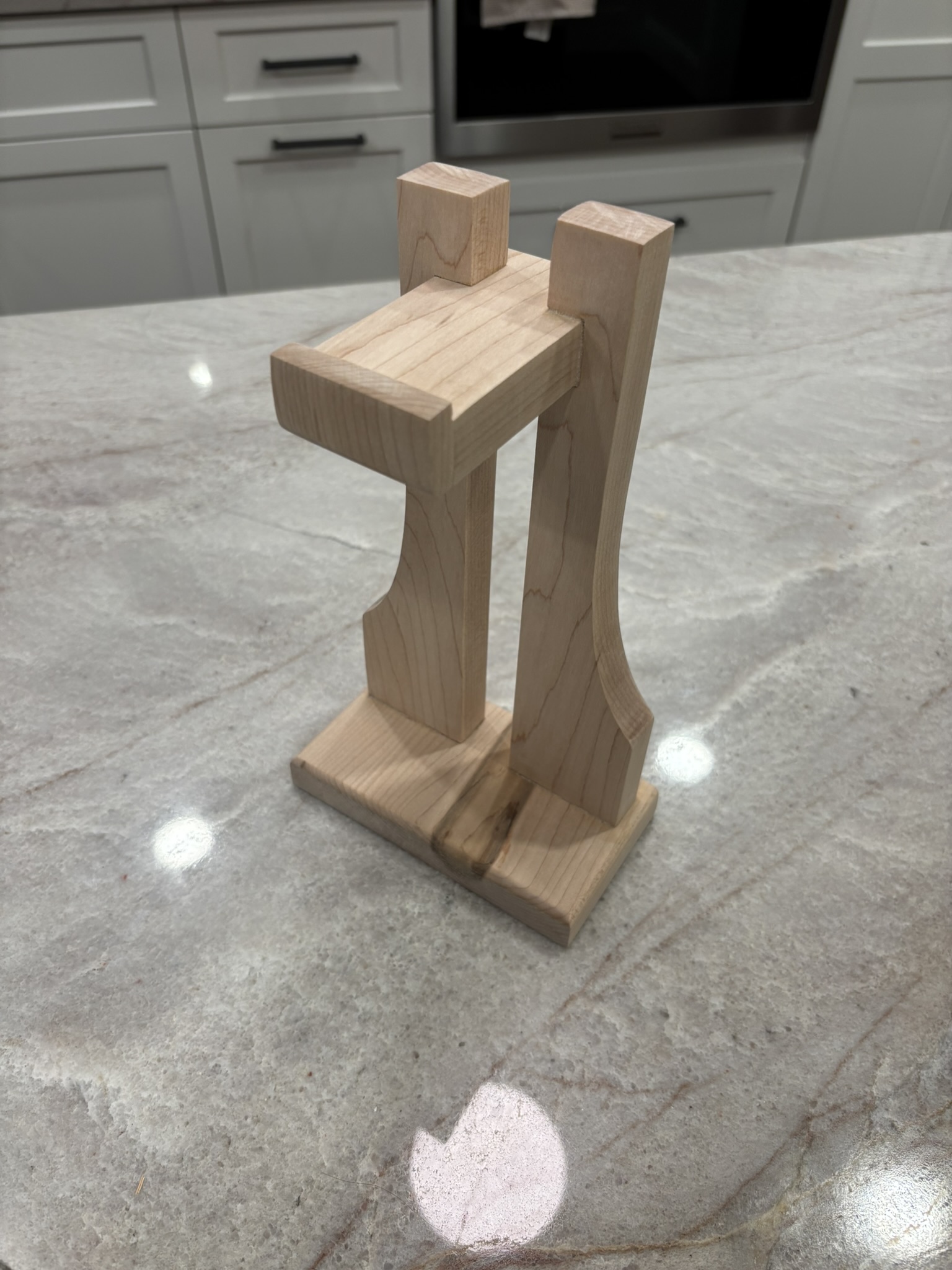 I'm pretty happy with the result! My joinery could definitely have been tighter. I had to make somewhat excessive use of the sawdust trick but I think I learned a lot on this project that my future projects will benefit from as well. As an aside, I wish companies gave better reference drawings for their products- I struggled to find the full dimensions of the Airpod Maxes (the published drawing only listed the total square overall dimensions which was sufficient, but it would have been nice to not have had to estimate the measurement of the headband). I was trying to minimize the footprint of the stand, but I wanted to make sure that it wouldn't tip forward under the weight (since the Maxes have really wide earpieces, which I didn't want bumping the arms) and that the center of mass was still above the base. It ended up being fine.